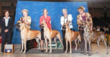 Sebastian taking Best of Breed. Rio taking winners dog and best of winners. Luna taking Best of Opposite and Mireya taking Winneers bitch. Sept 2013
